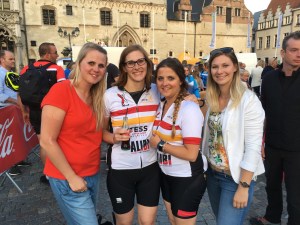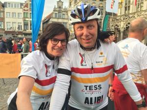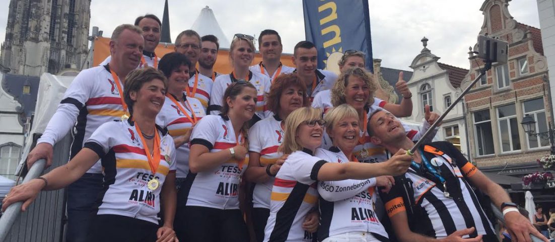 De sfeer is zo bijzonder tijdens deze vierdaagse. Al wie fietst of komt supporteren doet dat wel voor iemand in het bijzonder. Je geraakt spontaan aan de praat, geeft elkaar een schouderklopje. Vanochtend stond ik naast een jonge vrouw, wiens zus 1000 km solo fietste. Morgen op moederdag fietsen ze samen als eerbetoon aan hun mama. Ik sprak ook met een collega van de Anker, die haar zus vorig jaar verloor aan borstkanker. De vriendenclub richtte voor Griet, die huisarts was in Hombeek de ‘Grietsers’ op en fietsen met twee teams.
