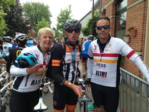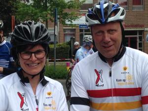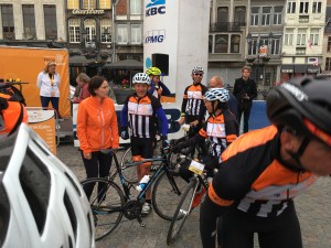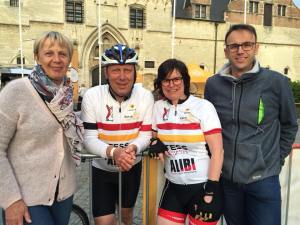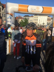 Nog even een pluim voor de wegkapiteins ook. Een bijzondere madam is Veronique, die vandaag met haar man Rudy de Bie aan de start stond. Zij help iedereen die het moeilijk heeft onderweg er met de glimlach door. Niet dat het nodig zal zijn, maar meester Paul en meester Raoul zijn in goede handen.