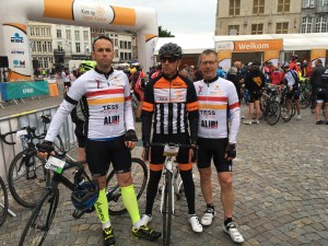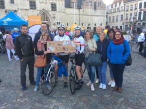 Vandaag fietsen meester Raoul en meester Paul de volle 250 km, daar doen we nu al onze hoed voor af. Meester Paul neemt immers de rit van de geblesseerde meester Stein (alias de schone slaper, die nog in zijn bed lag te ronken 🙂 ) over. Ook meester Bart was aan de start, bij hem zal de teller vanavond op 750 km staan. De juffen op post waren druk plannen aan het smeden, waarbij het woord ‘vetmesten’ al eens viel, je bent verwittigd meester Bart!