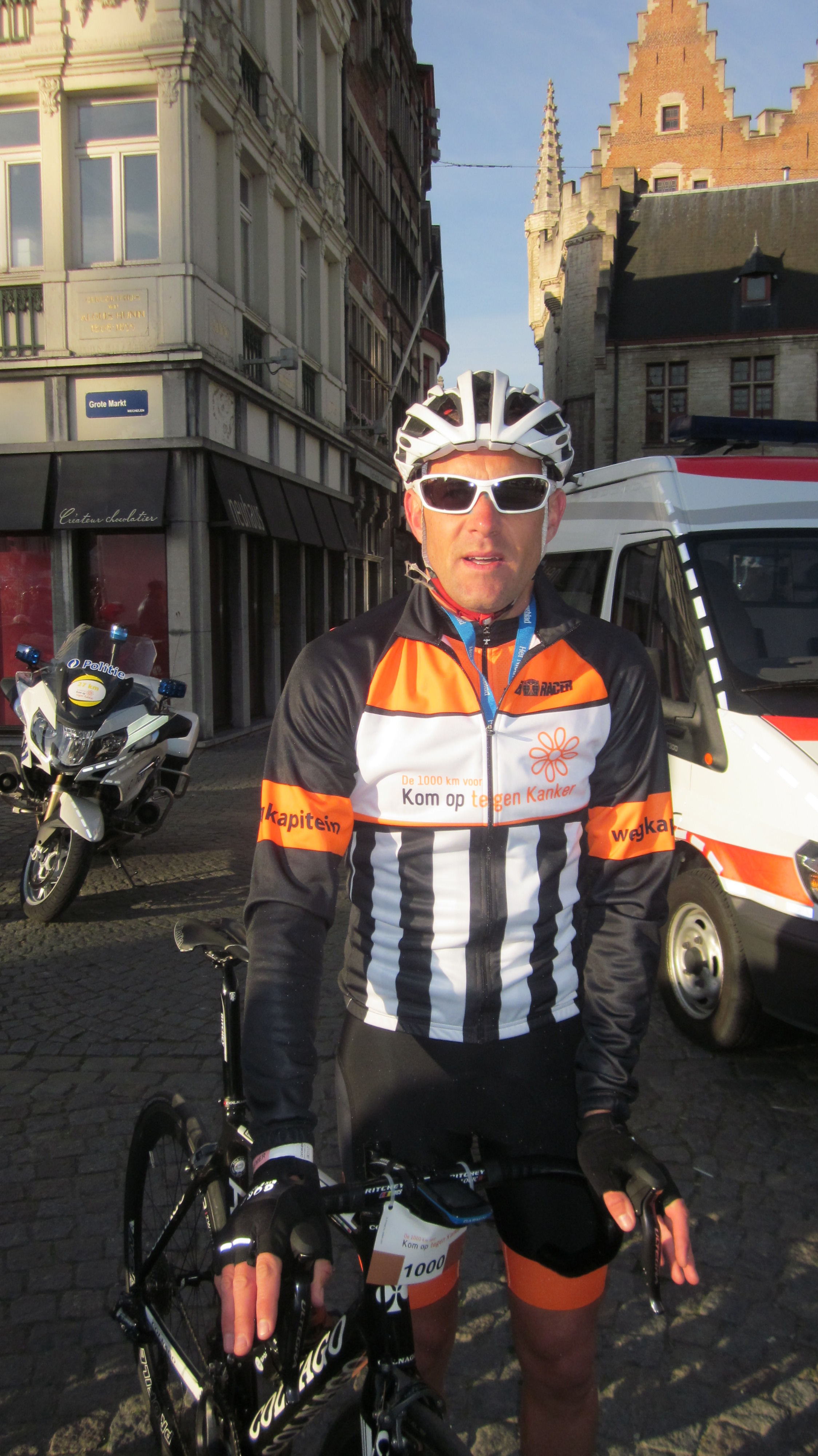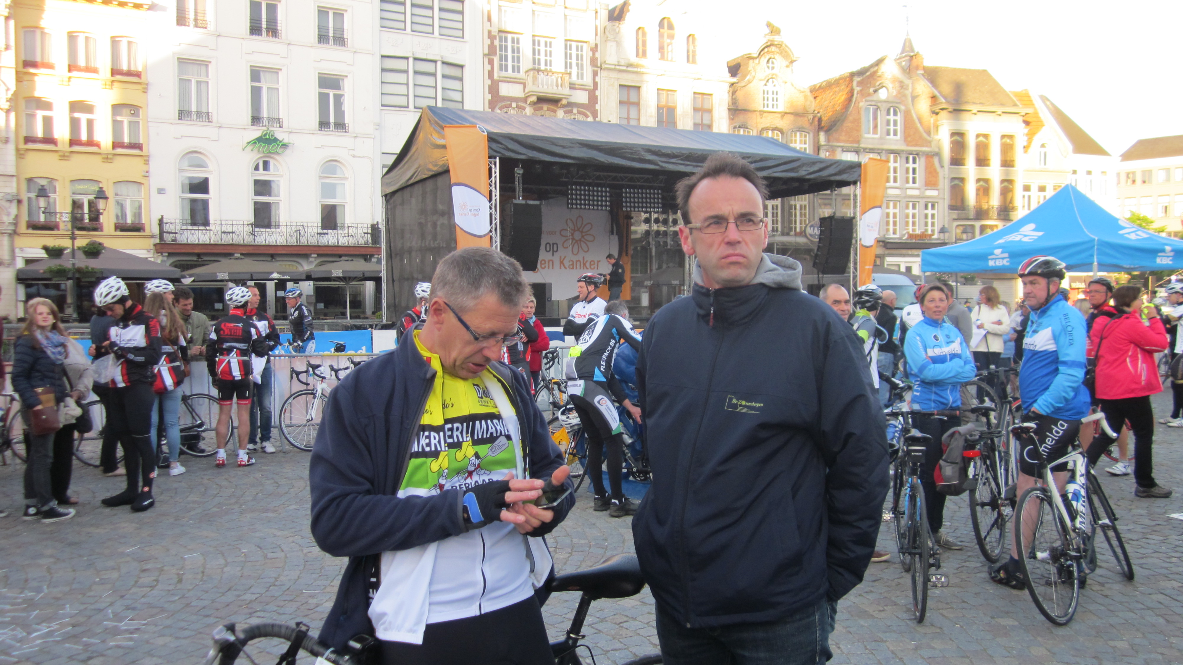 De vroege vogels kunnen onze fietsende juffen en meesters gaan aanmoedigen bij het vertrek op de Grote Markt. Om 7 u vertrekt het peloton, waarin zij meerijden. De avondaankomst is voorzien rond 19 u 00, eveneens op de Grote Markt. Ook dan is het voor onze ploegleden fijn als ze wat supporters zien aan de eindlijn.