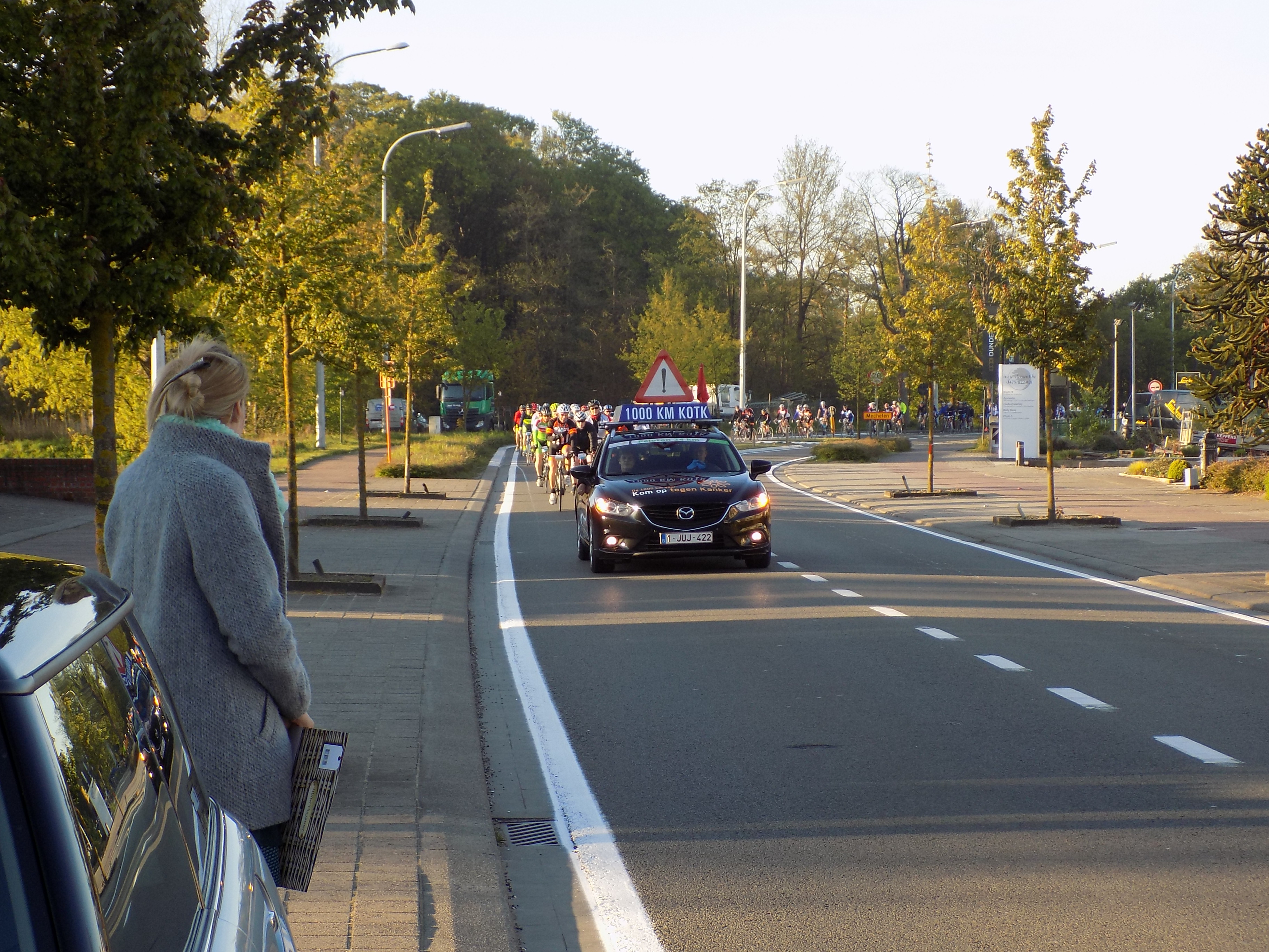De ochtendzon was er al toen juf Wenke met een grote glimlach aan de eerste rit begon. Ze was er niet alleen. Vroege vogels Karina, Linda en Raoul waren er om haar succes te wensen en uit te wuiven. Ook in Walem waren er supporters op het appél en in Rumst was juf Britt op post. Voor juf Wenke wordt het een bijzondere dag. Niet alleen fietst ze voor de eerste keer mee, ze fietst met een speciaal iemand in haar hart.