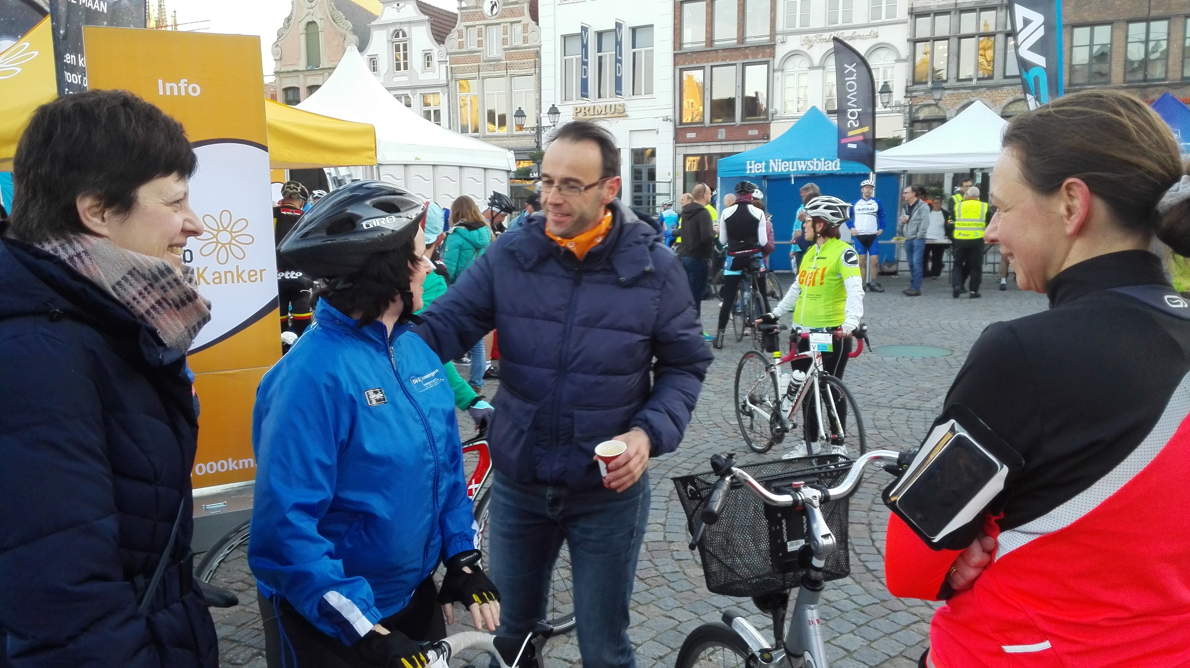 Vrijdagnamiddag 16 april 2016 is mijn zeer goede vriendin Samira overleden na een zware strijd tegen kanker. Ik was er kapot van…Van Walem ben ik ’s anderendaags met mijn collega’s naar Genk gefietst…122 km stond op de teller toen we arriveerden. Bergop heb ik zwaar afgezien…ik heb gevloekt op de hellingsgraad en op mijn oh zo slechte fysieke conditie terwijl ik vanbinnen stilletjes huilde om het verlies van een véél te jonge prachtvrouw… maar ik heb doorgezet, net omdat Samira dat ook altijd deed! Bergaf heb ik gelachen en herinneringen opgehaald aan die altijd zo vrolijke en optimistische vriendin…ik genoot van de wind en de zon in mijn gezicht en zag haar lachende snoet voor mijn ogen. Ze heeft een bikkelharde strijd geleverd, maar het monster in haar hoofd was te sterk. We hebben getracht om op een waardige manier afscheid te nemen en we hebben haar losgelaten en gezegd dat ze mocht gaan rusten nu…dat ze de rust dubbel en dik had verdiend…ook al riep een stem in ons binnenste heel luid: We willen je niet kwijt! Samira waakt nu over ons allen. Ze zag alle mensen héél erg graag…en dat toonde ze ook! Op 5, 6, 7 en 8 mei rijden we met 10 collega’s opnieuw, 125 km per persoon…in de hoop dat we met ons sponsorgeld een steentje kunnen bijdragen aan de smerige ziekte die het leven van velen kapot maakt…ik ben alleszins supergemotiveerd nu. Samirake het ga je goed hierboven, bedankt dat ik je mocht kennen…bedankt voor de leuke herinneringen…bedankt dat jij me leerde dat je nooit of nooit mag opgeven…dat je altijd moet lachen en vooral moet genieten van de kleine dingen in het leven! xxx