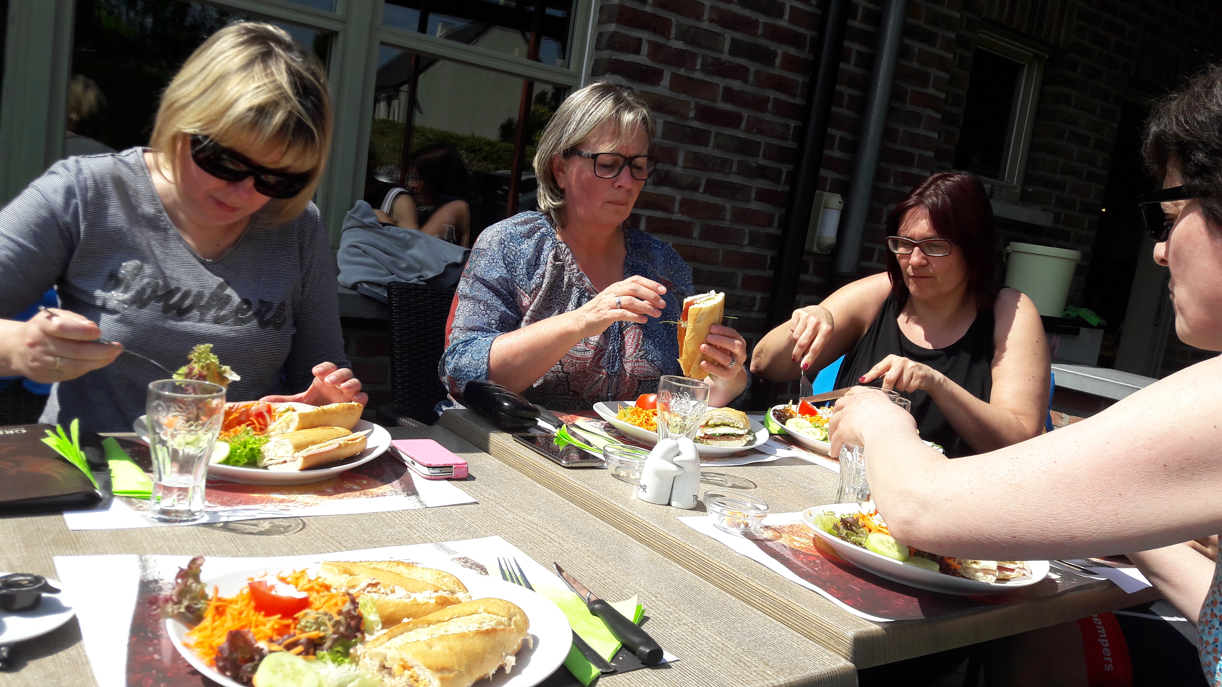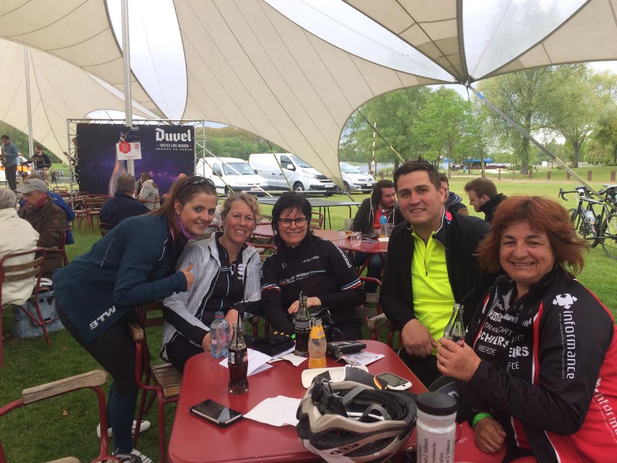 Een dapper groepje reed vandaag, ondanks het sombere weer, de duvel-route. Dankzij de drank (welke dat was, laten we in het midden 🙂 ), de wafel en de goede benen lukte dat perfect. Op de teller prijkte 104km. Chapeau voor meester Jonathan, die zich wist te handhaven tussen de vrouwelijke collega’s. Of moet het omgekeerd zijn, chapeau voor de vrouwelijke collega’s, die meester Jonathan mee op sleeptouw namen? Wij spreken er ons niet over uit.